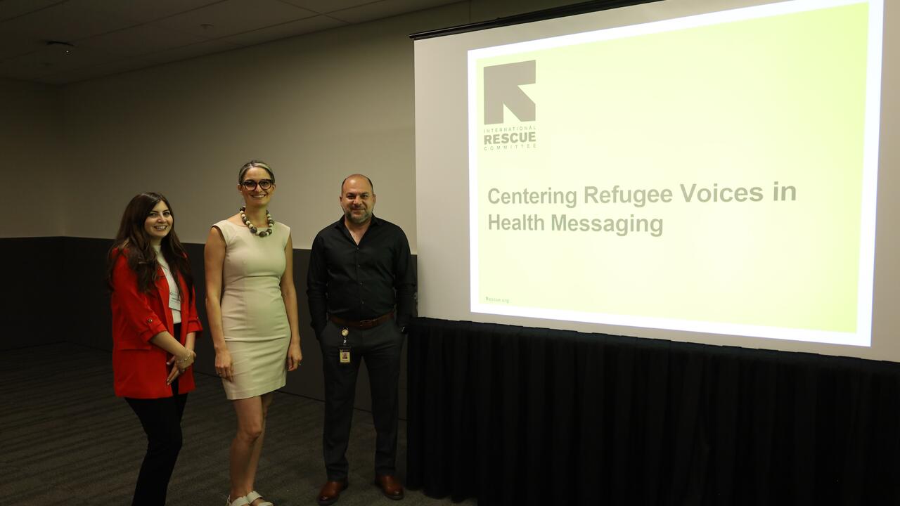 In partnership with colleagues Lizbeth Gonzalez, MAS, Sr. Health Program Manager for the IRC offices in Tucson and Phoenix, and Leena Zahra, Project & Operations Sr. Coordinator for IRC HQ, Dr. Aziz delivered an interactive workshop entitled Centering Refugee Voices in Health Messaging, which explored how to identify preferred messaging channels for refugee communities, how to use creative messaging for COVID-19 and beyond, and the process of cultural validation.