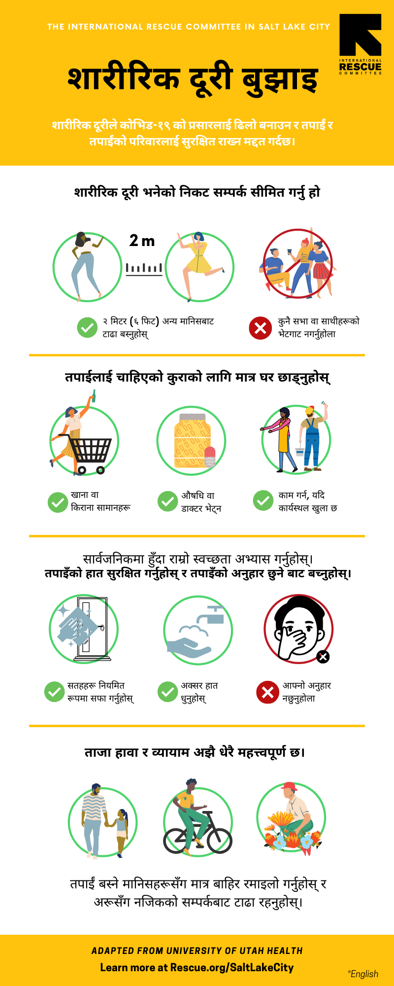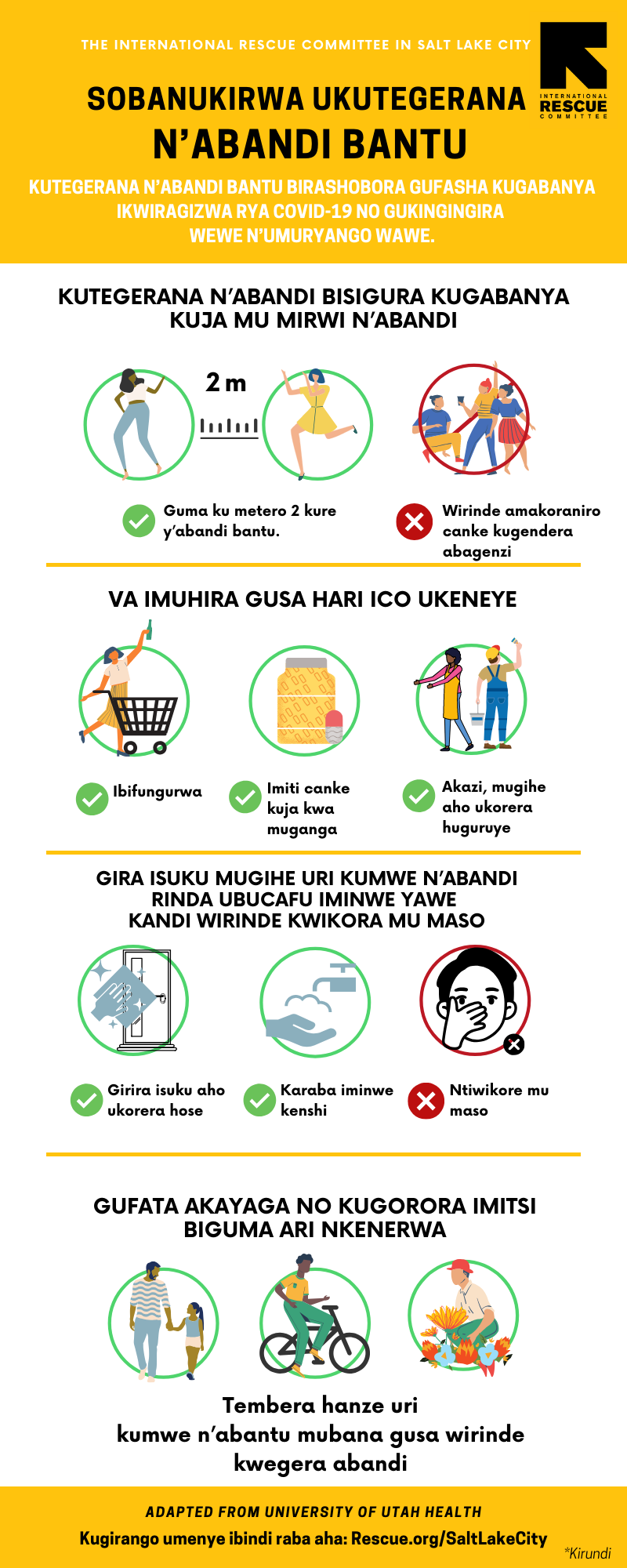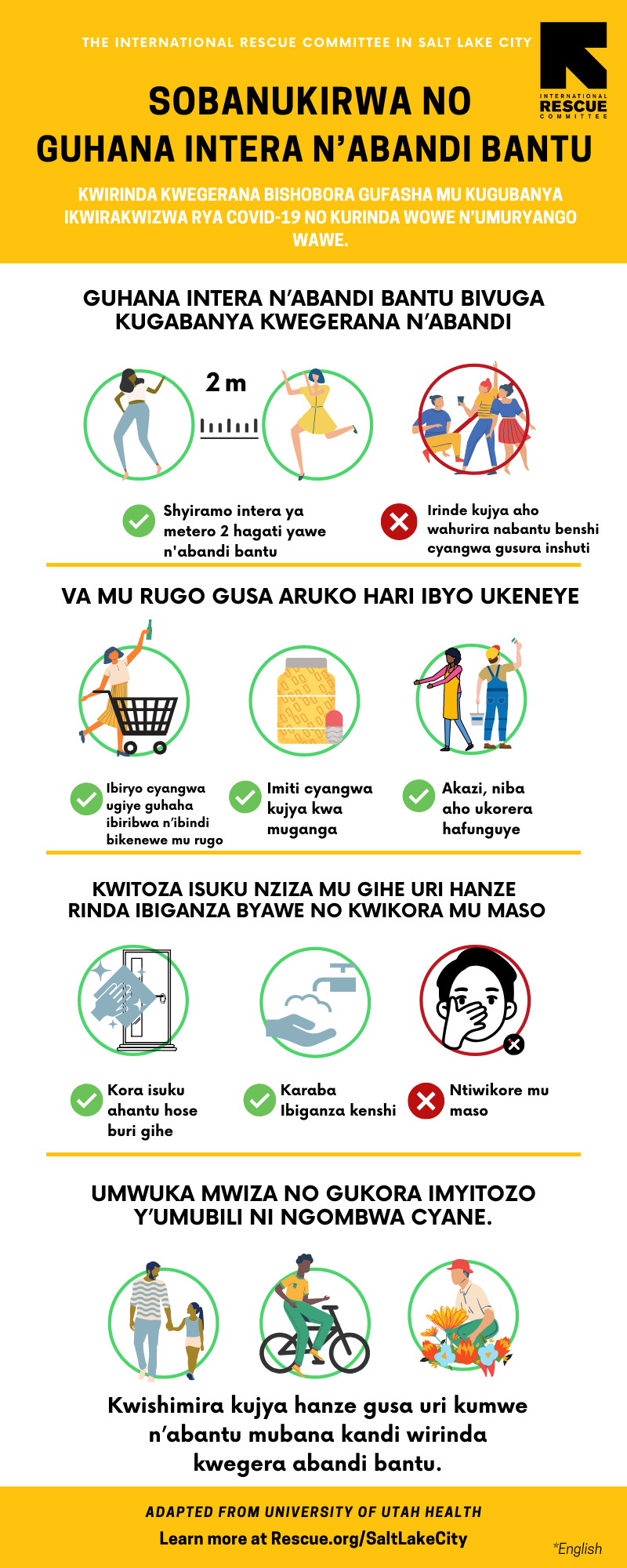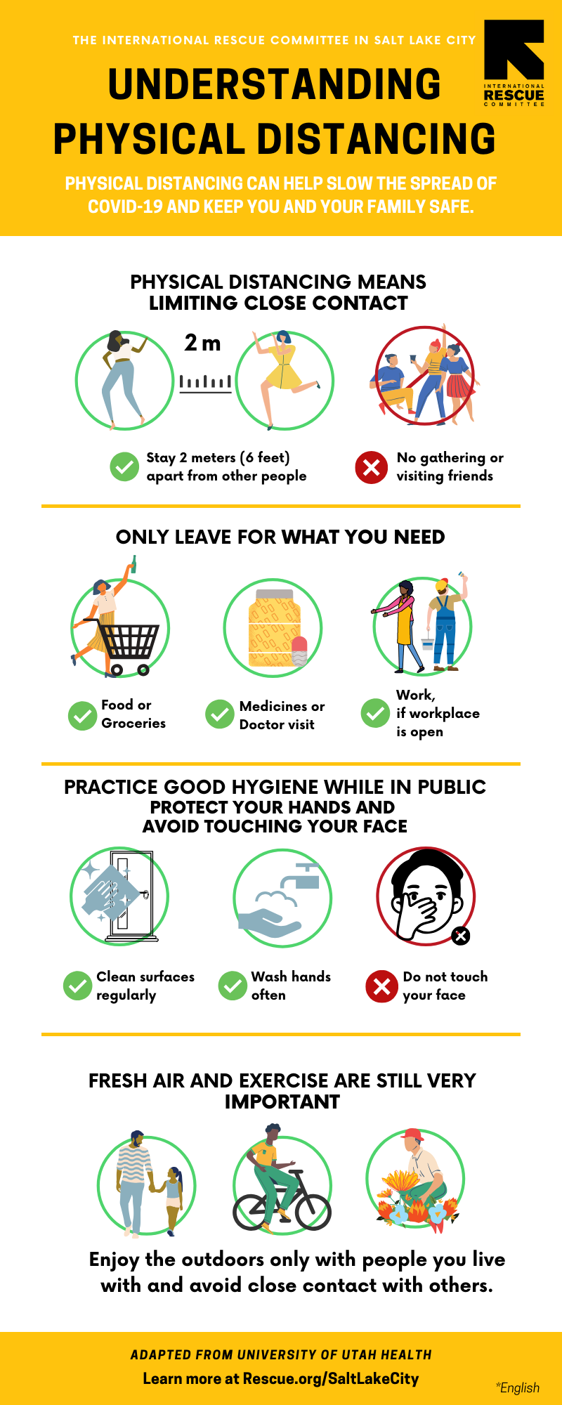 We partnered with IRC Salt Lake City to translate physical distancing guidelines & cloth face mask guidelines into 6+ different refugee languages!