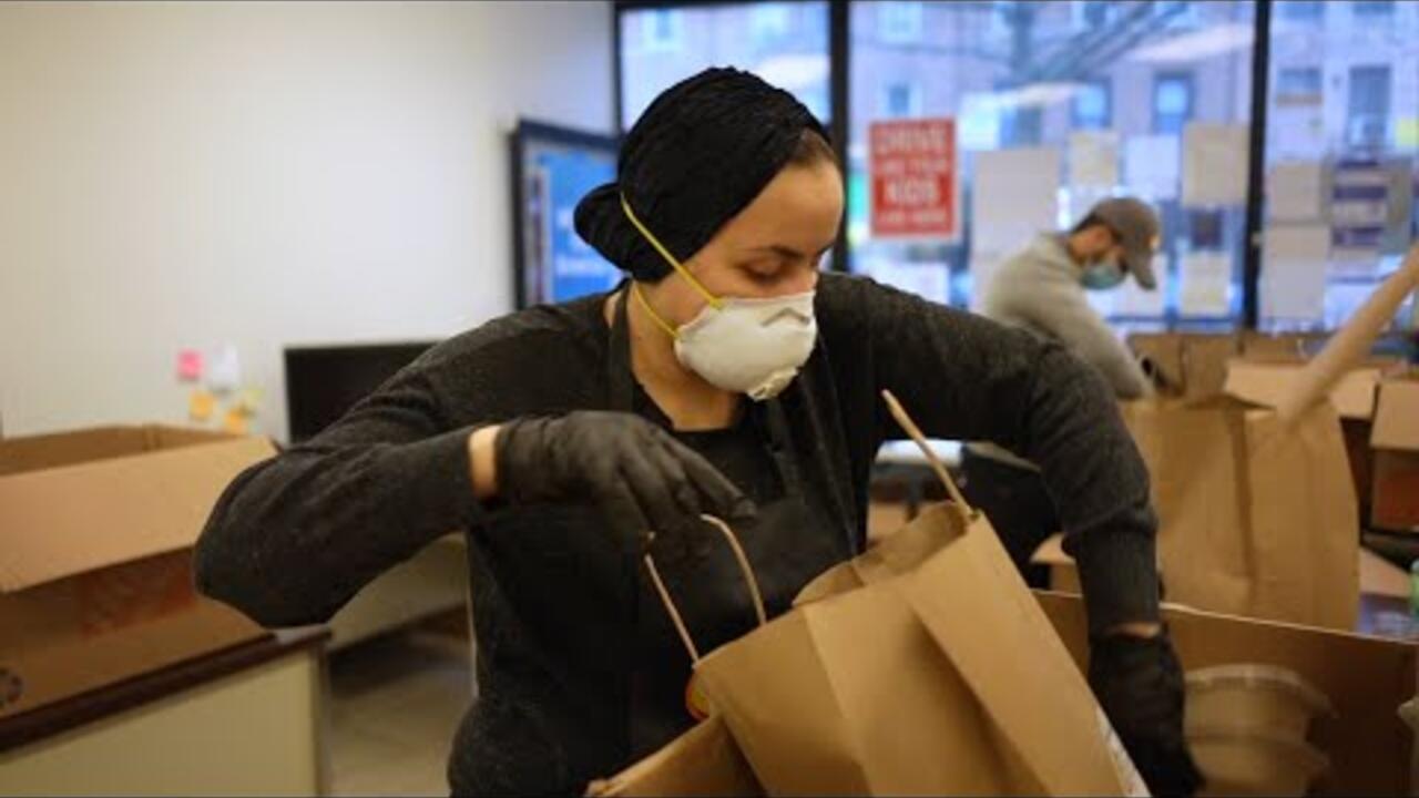 Zwei von zehn Amerikaner*innen sind derzeit arbeitslos gemeldet. Um die wirtschaftlichen Folgen der Corona-Pandemie zu lindern, hat sich IRC mit der von Starkoch José Andrés gegründeten World Central Kitchen (WCR) zusammengetan. WCR versorgt vom Coronavirus schwer betroffene Menschen in über 200 US-amerikanischen Städten mit Mahlzeiten. IRC unterstützt bei der Verteilung und ermöglicht Geflüchteten, damit eine bezahlte Arbeit aufzunehmen. Dina ist eine unserer Mitarbeiter*innen in New York. Mit dem nötigen Sicherheitsabstand und persönlicher Schutzausrüstung verteilt sie kostenlose Mahlzeiten an ihre Nachbarn. Gemeinsam helfen sie sich, die Pandemie zu überstehen.