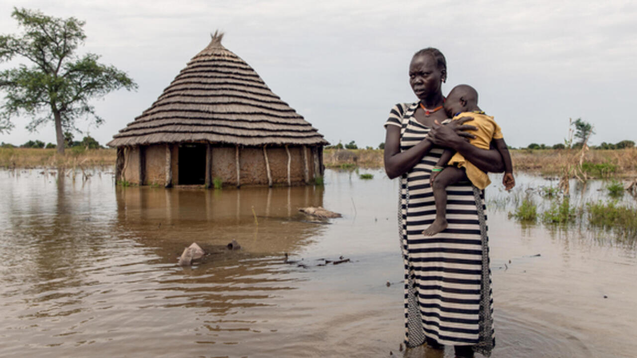 When extreme weather caused flooding in Abuk’s home in South Sudan, it destroyed everything. “We could not salvage a thing,” Abuk told us. “Water was coming from below, and it was raining through the roof. I got up, picked the baby up and covered her.”