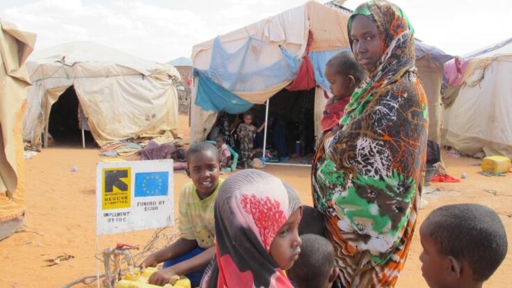 The IRC, with support from the European Commission’s Department for Humanitarian Aid and Civil Protection (ECHO), the Office of US Foreign Disaster Assistance and other private donors, provides clean water, sanitation and hygiene services throughout Mudug region, of which Galkacyo is a part, for people uprooted by drought and conflict and living in camps, as well as host communities. We work in six camps for internally displaced people, as well as with local communities. “Before we started working with the communities in the camps, there were many problems,” says Ibrahim Ali, who works on the IRC’s water, sanitation and hygiene projects in Galkacyo. , “Children weren’t able to go to school because they had to fetch water from long distances. Women were attacked while fetching water. But we have extended water lines into the camps so the distance isn’t far. We have also repaired boreholes,” he explains. In the last year alone, the IRC rehabilitated 6 boreholes and 34 shallow wells, as well as excavating 3 water pans, and our water, hygiene and sanitation projects benefitted approximately 65,000 people.