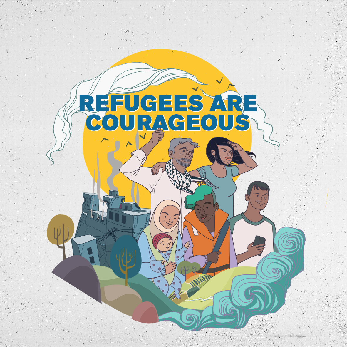 Download Diala Brisly's powerful illustration to share her work far and wide this World Refugee Day.