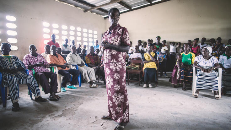 In Ivory Coast, an IRC supported group of 10 women and 5 men observes their village for violent behavior, such as rape and domestic violence, and presents their findings to the village leader to discuss and address the issue. The IRC works to change social norms so women and girls can live free from violence and fully take part in personal, social, civic and economic opportunities. Photo: Christian Bastiansen/IRC