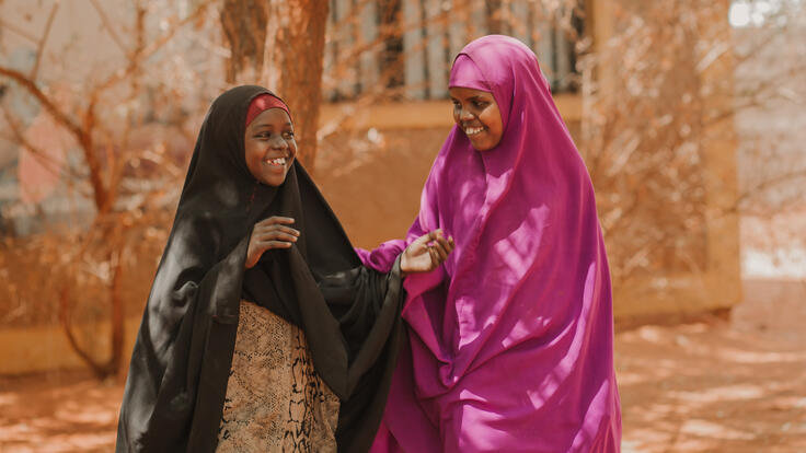 Best friends Zahara Adem, 10 (left) and Shenkeron Abdi, 13 are part of an IRC program in Helowyn that equips refugee girls with life skills, including decision-making and developing trust and friendships. (Photo: Martha Tadesse/IRC)