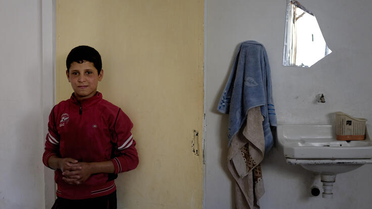 12-year-old Waleed, Anwar's eldest child, at his home in Ramtha. Because of a leg injury, Anwar's husband is unable to work. When the cash assistance ended after six months, Anwar had no other choice but to send Waleed to work. Waleed is now back in the classroom after his family received cash assistance from another organization. Photo: Timea Fauszt/IRC